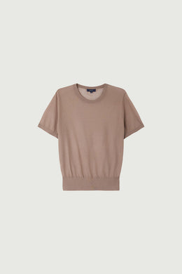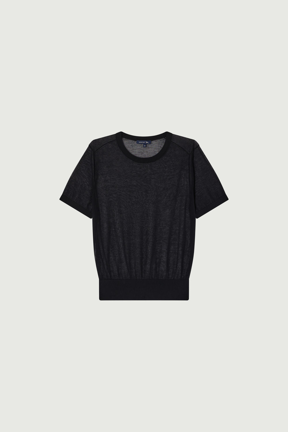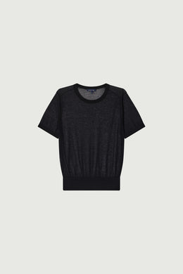DUA is a short-sleeved jumper knitted in an ultra-fine knit. Transparent, it can be worn on its own or layered with a dressy or casual top depending on the look you want to achieve.