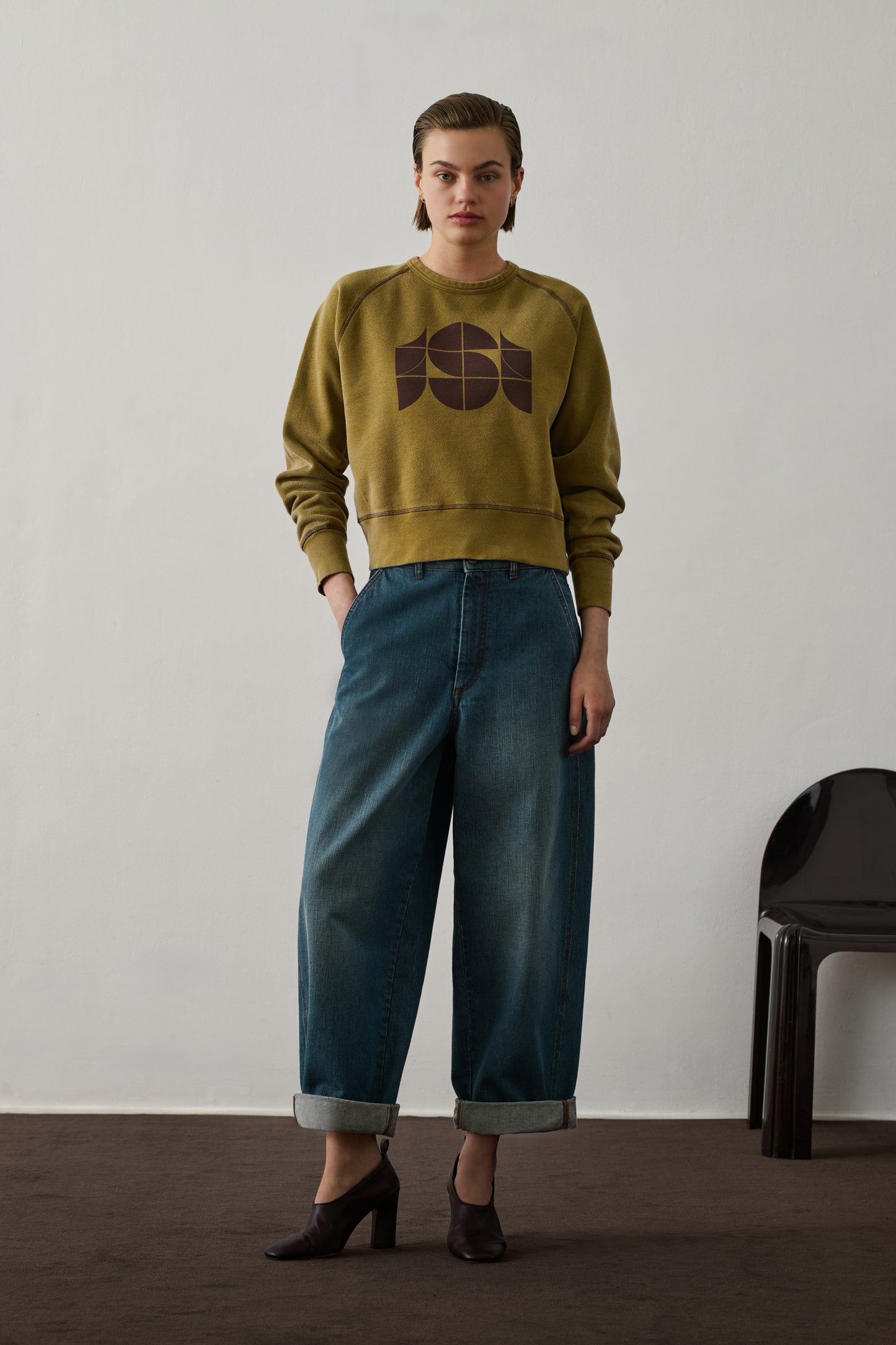Washed fleece "S" monogram sweatshirt bronze