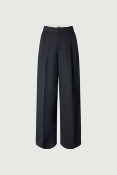 DANDY is a dark navy kimono-style jacket with long sleeves and a flowing cut. Cross-over closure with tie belt and deep V-neck. Understated, modern elegance, ideal worn as a set with the BRISTOL trousers.